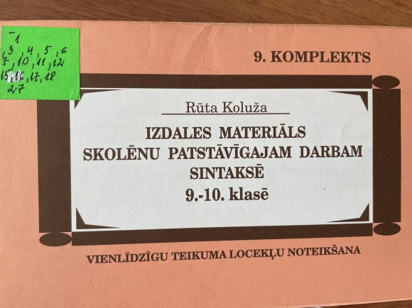Izdales materiāls skolēnu patstāvīgajam darbam sintaksē 9. - 10. klasē