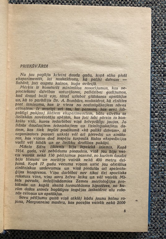 | Pazīstamais franču ģeologs un speleologs Mišels Šifrs Ir veicis drosmīgu zinātnisku eksperimentu. Viņš nolaidās Skarasona bezdibenī 135 m dziļumā un pilnīgā vientulībā, tumsā un aukstumā nodzīvoja uz pazemes ledāja divus mēnešus. Šifra grāmata ir aizraujošs, pārdomām bagāts un franču humora piestrāvots stāsts par zinātnieka varoņdarbu, viņa ārkārtīgo izturību, gribasspēku un drosmi. | |