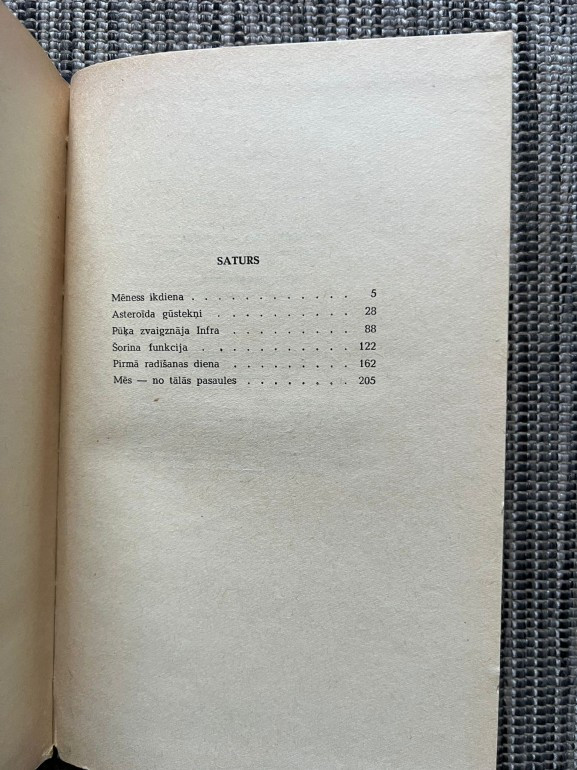 | Fantastikas stāstu krājums ar spēcīgu padomju ideoloģijas pieskaņu. Kosmosa piedzīvojumi, kontaktēšanās ar citām civilizācijām un komunisma triumfa vīzijas. Vairāk politiska alegorija nekā zinātniskā fantastika | |