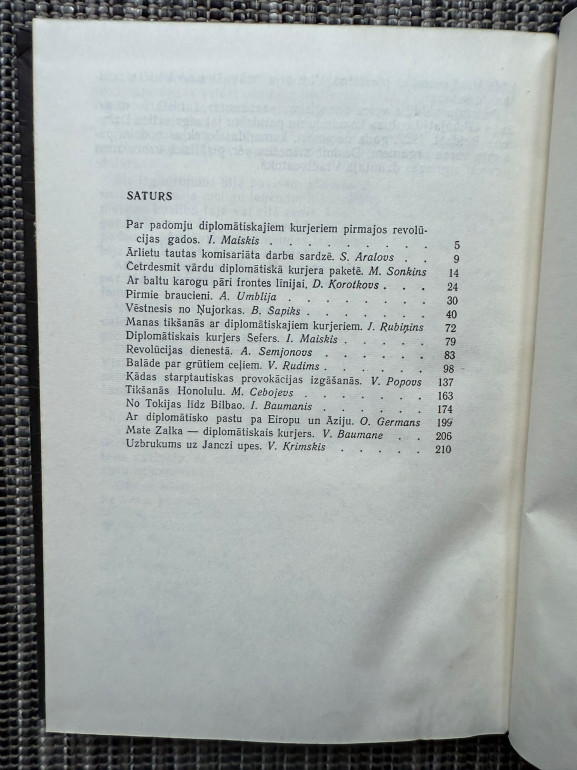 | Grāmata “Diplomātiskie kurjeri”, sastādījis V. Popovs, ir dokumentālu stāstu krājums par padomju diplomātiskajiem kurjeriem pirmajos revolūcijas gados. Tajā aprakstītas viņu misijas, piedzīvojumi un izaicinājumi dažādās valstīs un situācijās – no frontes līnijas šķērsošanas līdz starptautisku provokāciju novēršanai. | |