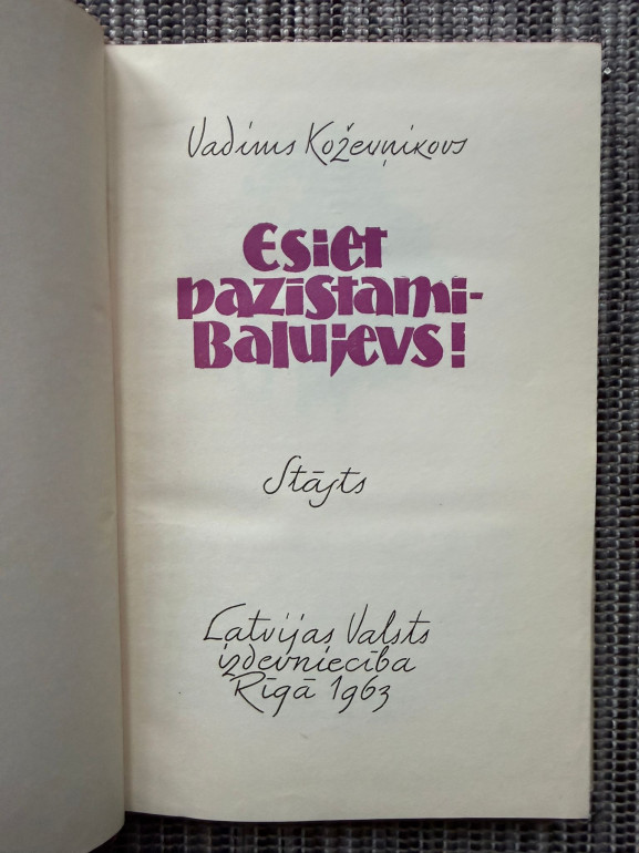 | Vadima Kožeņikova romāns “Esiet pazīstami – Balujevs” (1963). Darbs atklāj cilvēku likteņus un morāles problēmas padomju sabiedrībā, uzsverot ideoloģiskos konfliktus un personības attīstību. Klasika, kas rakstīta ar psiholoģisku dziļumu un sociālu spriedzi. | |
