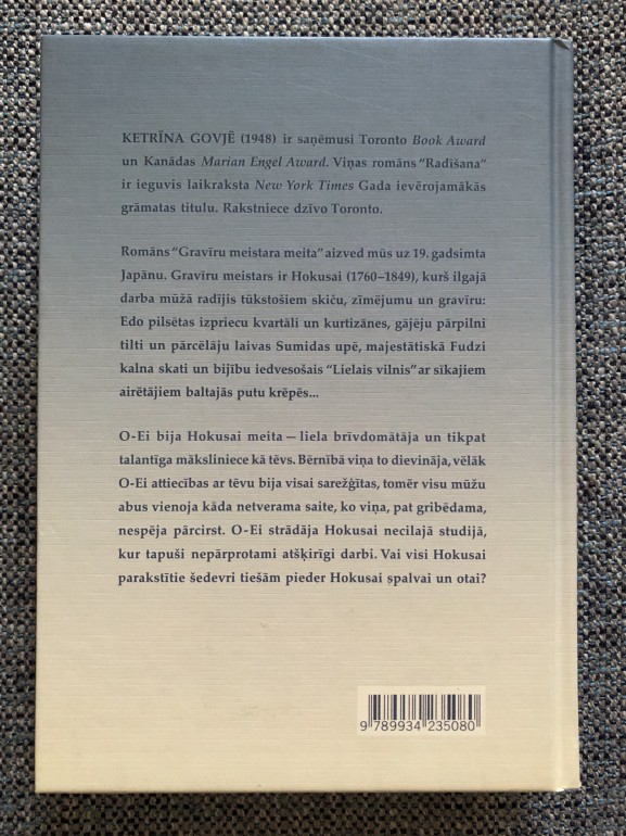 | 19. gadsimta Japāna. Gravīru meistars ir Hokusai (1760-1849), kurš ilgajā darba mūžā radījis tūkstošiem skiču, zīmējumu un gravīru: Edo pilsētas izpriecu kvartāli un kurtizānes, gājēju pārpilni tilti un pārcēlāju laivas Sumidas upē, majestātiskā Fudzi kalna skati un bijību iedvesošais “Lielais vilnis”ar sīkajiem airētājiem baltajās putu krēpēs… O-Ei bija Hokusai meita —liela brīvdomātāja | |