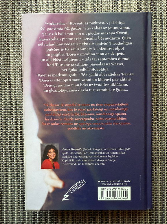 | Poētisks un aizkustinošs mīlasstāsts par Doru un Luku, kuru ceļi šķiras un atkal krustojas. “Ik dienu, ik stundu” ir romāns par likteni, ilgošanos un mīlestību, kas pārdzīvo laiku un attālumu. Pārlaicīgs un mūsdienīgs vienlaikus. | |