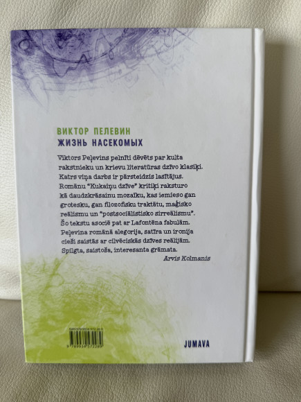 | "Viktors Peļevins pelnīti dēvēts par kulta rakstnieku un krievu literatūras dzīvo klasiķi. Katrs viņa darbs ir pārsteidzis lasītājus. Romānu “Kukaiņu dzīve” kritiķi raksturo kā daudzkrāsainu mozaīku, kas iemieso gan grotesku, gan filozofisku traktātu, maģisko reālismu un “postsociālistisko sirreālismu”. Šo tekstu asociē pat ar Lafontēna fabulām. | |