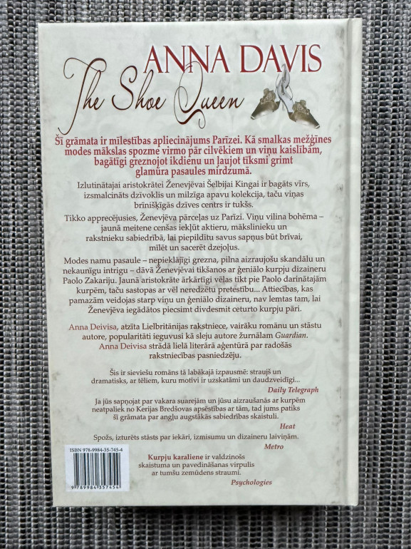 | Grāmata “Kurpju karaliene” ir Annas Deivisas stilīgs, 1920. gadu Parīzē balstīts romāns par angļu sabiedrības skaistuli Ženevjēvu Šelbiju Kingu, kuras apsēstība ar izsmalcinātām kurpēm un ekskluzīvo dizaineru Paolo Zakariju uzjunda romantisku dēku un liek pārvērtēt to, kas patiesi svarīgs dzīvē | |