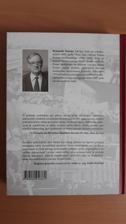 | Jauna,383 lpp,cietie vāki,2021 gads.Grāmatā kliedēts mīts par to,ka barikādes radās pēkšņi un stihiski.Autors apkopojis dokumentālas liecības par to,ka gatavošanās barikādēm sākās jau uzreiz pēc 1990.gada 4.maija,kad notika pirmie uzbrukumi neatkarību atjaunojušai LR Augstākajai padomei.Aprakstāmais periods noslēdzas ar 1991.gada augustu,kad mūsu valsts neatkarība tiek pasludināta “de jure”... | |