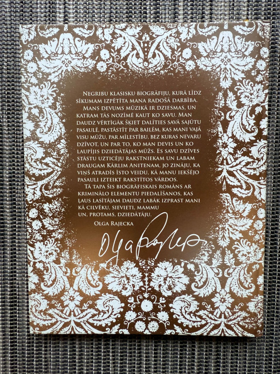 | Grāmata "Mana svētku diena" (autors: Kārlis Anitens) ir romāns, kurā galvenās varones Olgas Rajeckas atmiņu stāsti un pārdomas atspoguļo viņas skatījumu uz dzīves gājumu. Tie balstīti reālos audioierakstos, taču romāna notikumi un daļa personu ir autora izdomājums. | |