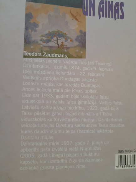 | a5, cietie vāki, autora piezīmju kladēs 1931. gadā aprakstīti Talsu pilsētas tā laika nami, iedzīvotāji un atstāstīti arī senāki vēsturiski notikumi. Vēstījums kārtots trīs daļās ar senrakstiem ierastu teksta rindkopu dalījumu paragrāfos, kas atvieglo aprakstītā notikuma vai teksta daļas atrašanu. | |