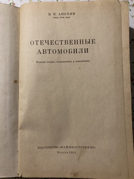 | Grāmata izdota 1964.gadā Maskavā. 780 lpp. bieza. Viss par padomju automobiļiem: Москвич-407, Москвич-410,Волга, Чайка, Урал u.c. | |
