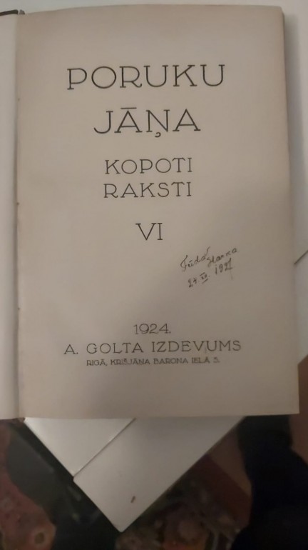 | Pārdod Jāņa Poruka kopotos Rakstus 10 sējumi. Grāmatas ideālā stāvoklī atrodās tajā pašā skapī ku tika noliktas 1924 gadā. | |