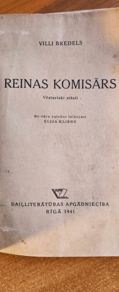 | Nosaukums Reinas komisārs: vēsturiski stāsti Autors Willi Bredel Līdzstrādnieks Elija Kliēne Izdevējs Daiļliterātūras Apgādnieciba, 1941 Apjoms 167 lappuses | |
