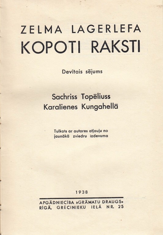 | Izdots apgādniecībā "Grāmatu draugs" 1938. gadā | |