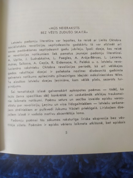 | Saturs: Tēraudvējš / Roberts Eidemanis. Piektais cēliens / Andrejs Upīts. Neuzvaramā armāda / Jānis Sudrabkalns. Pēterpils / Roberts Eidemanis. Kapi / Linards Laicens. Ceļi / Alvils Ceplis. Kremlī pie Ļeņina / Aleksandrs Čaks. Pulkvedis Vācietis Perekopā / Jānis Medenis. Slava / Valdis Lukss. Ešeloni brauc naktij cauri / Bruno Saulītis. Demobilizācija / Ojārs Vācietis. Pulkveža Vācieša vēstules / | |