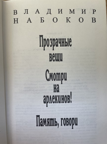 | Собрание сочинений американского периода в пяти томах, Том 5. Романы 'Прозрачные вещи' (1972), 'Смотри на арлекинов!' (1974), а также роман-автобиография 'Память, говори' (1967) | |