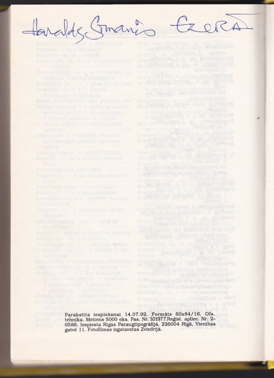 | Metiens 5000 eks. Aizmugurē ieraksts "Haralds Sīmanis EZERĀ" | |
