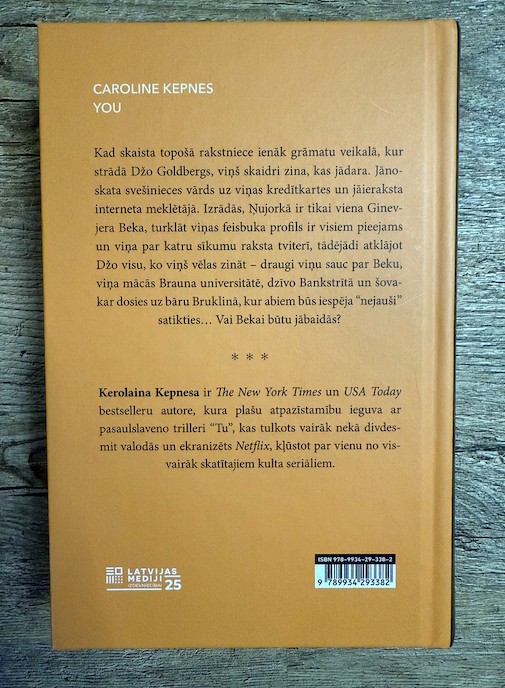 | Kad skaista topošā rakstniece ienāk grāmatu veikalā, kur strādā Džo Goldbergs, viņš skaidri zina, kas jādara. Jānoskata svešinieces vārds uz viņas kredītkartes un jāieraksta interneta meklētājā. Izrādās, Ņujorkā ir tikai viena Ginevjera Beka, turklāt viņas feisbuka profils ir visiem pieejams un viņa par katru sīkumu raksta tviterī, tādējādi atklājot Džo visu, ko viņš vēlas zināt. | |