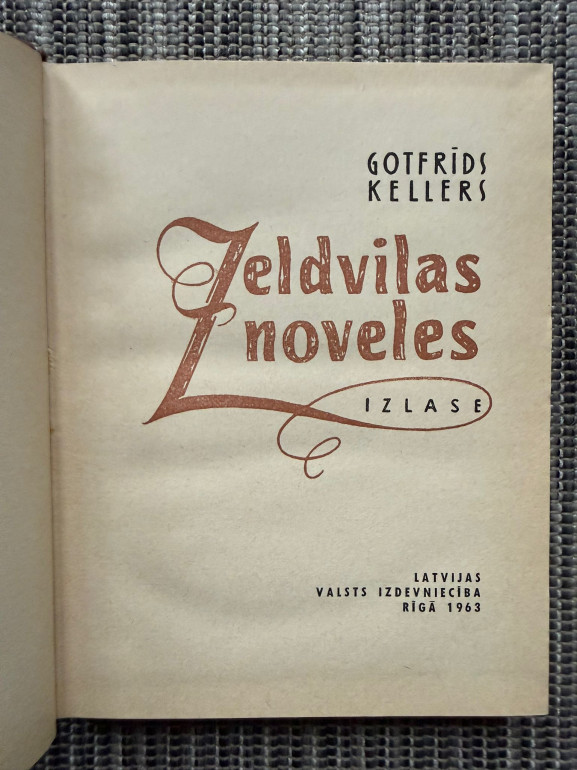 | “Zeldvilas noveles” (Gotfrīds Kellers) – reālisma noveles par Šveices dzīvi, cilvēku raksturiem un morāles vērtībām. Izdots 1963. gadā, 283 lpp. | |