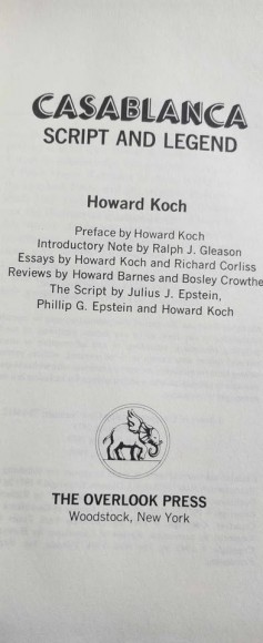 Casablanka The complete script and legend behind the film Howard Koch