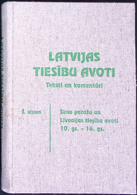 Latvijas tiesību avoti, teksti un komentāri. 1. sējums. Seno paražu un Livonijas tiesību avoti 10.gs