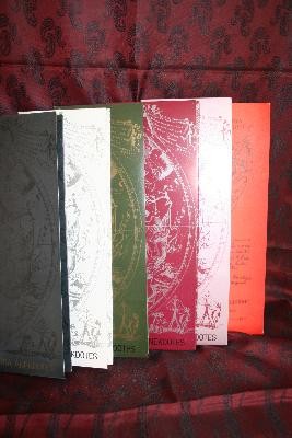| 28,5x9,5 cm; brošētas, krāsains kartona apvāks, teksts drukāts horizontāli, 1.d. zīmējis V. Svirskis un agrāk tik populārās vizītkaršu mīklas. Metiens 55 000 eks., vēlā mazāk. 2.d. il. no dažādu kol. Ex libriem; lasāma no abiem "galiem". 3. d. il. R. Vitkovskis,4.d. il. U.Mežavilks, 5.d. il. G.Bērziņš, 6. d. U.Zemzaris... visas daļas kā jaunas. | |