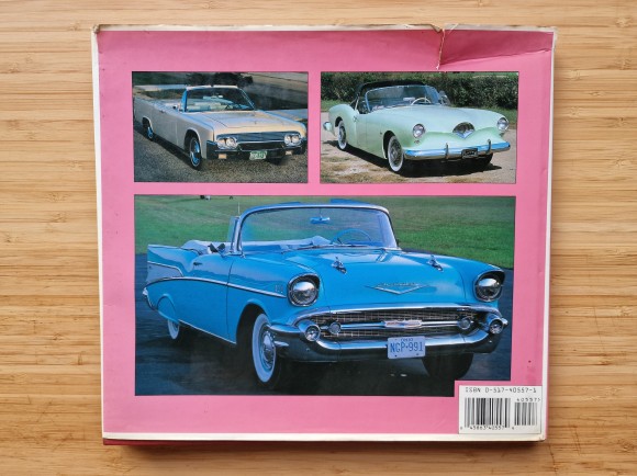 | Grāmata vidēji labā stāvoklī ar lieliem amerikāņu auto attēliem un nelieliem aprakstiem. Lapaspusēm nav numerācija, bet pati grāmata ir ap 1 cm bieza. Viena lapa iekšpusē ieplēsta. Varu atsūtīt vairāk attēlus. ISBN 0517405571 Dimensions : 11.5 x 0.75 x 10.5 inches | |