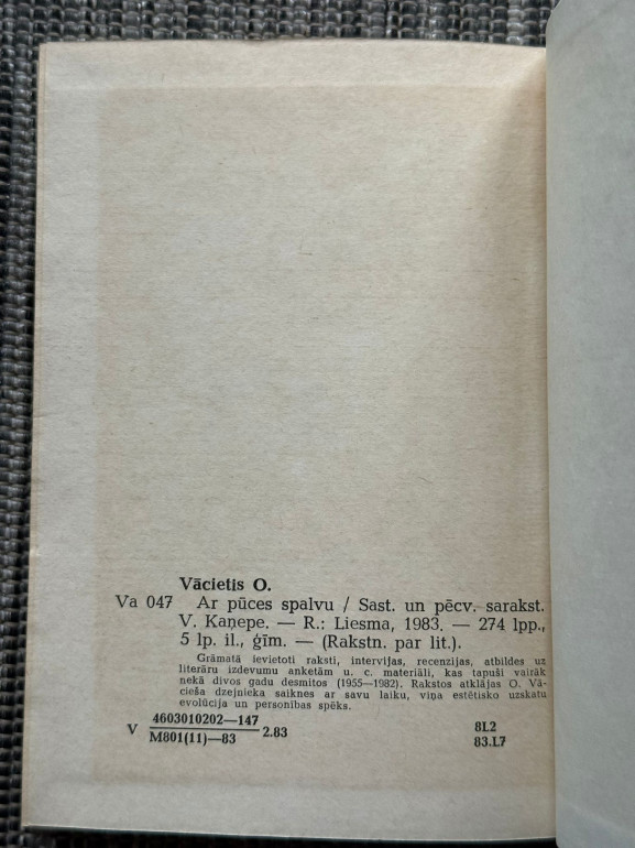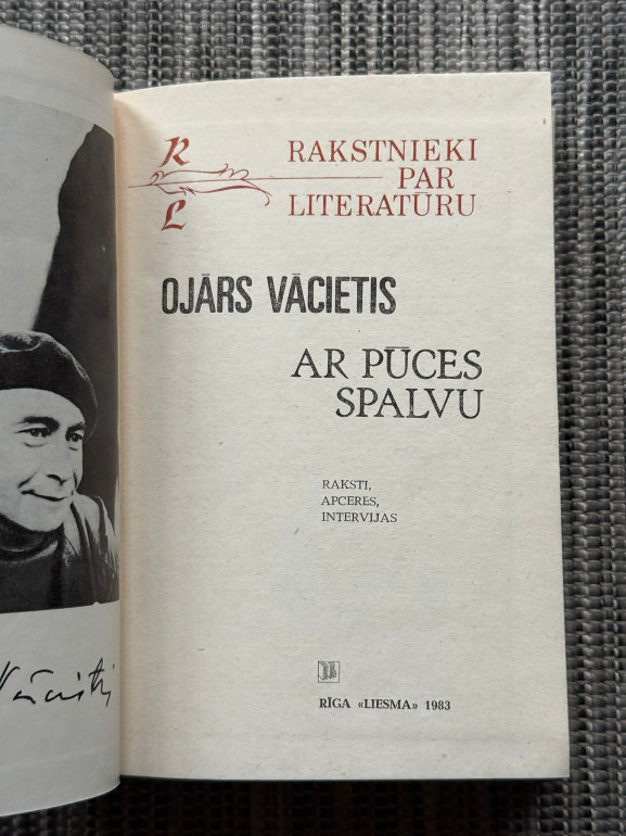 | Grāmata “Ar pūces spalvu” (Ojārs Vācietis) ir dzejoļu krājums, kurā autors apvieno liriku ar filozofiskām pārdomām par cilvēka būtību, laiku un sabiedrību. Vācietis izmanto spēcīgu metaforiku, ironiju un emocionālu intensitāti, radot darbus, kas iedvesmo domāt par patiesību un brīvību. | |