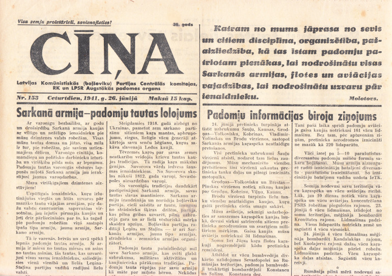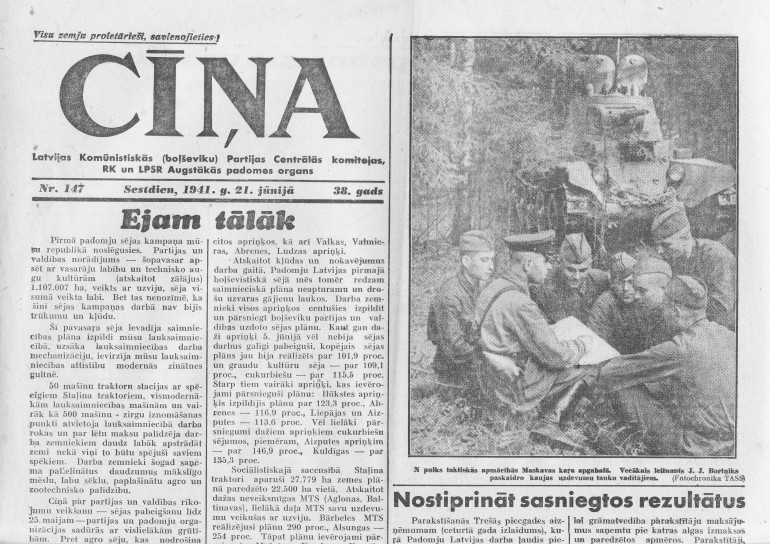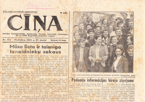 | Avīze Cīņa. 1941. gada 21, 26 un 27 jūnija eksemplāri | |