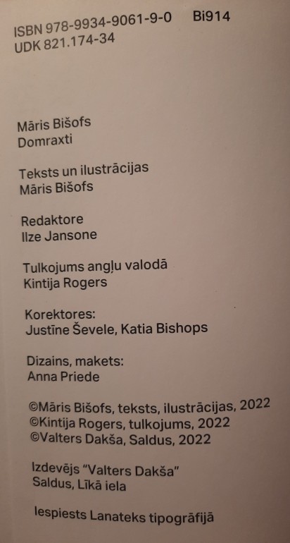 | Pārdod jaunu grāmatu - Māris Bišofs “Dom-raxti / Thought Pieces” Atrodas Rīgā, centrā Kontakti : Tel. 26558490 E-pasts : krists76@gmail.com | |