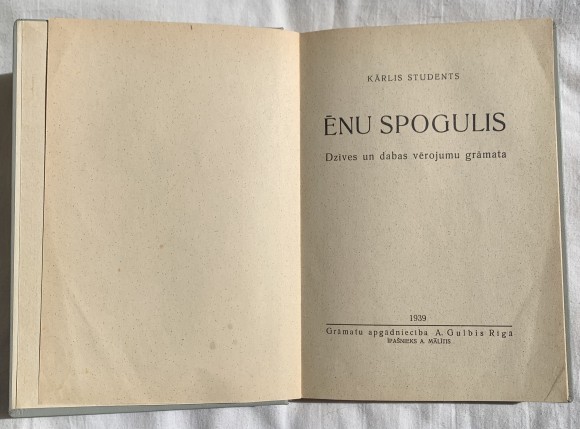 | Kārļa Studenta(1892-1947)grāmata "Ēnu spogulis" iznākusi 1939. gadā. Ceļojuma piezīmes - Siguldas un Līgatnes apkārtne; Dzērbenes apkārtne; Kraukļos, Liezerē, Kārzdabā, Cesvainē; Reņģu zemē; Dobelē un apkārtnē u.c. | |