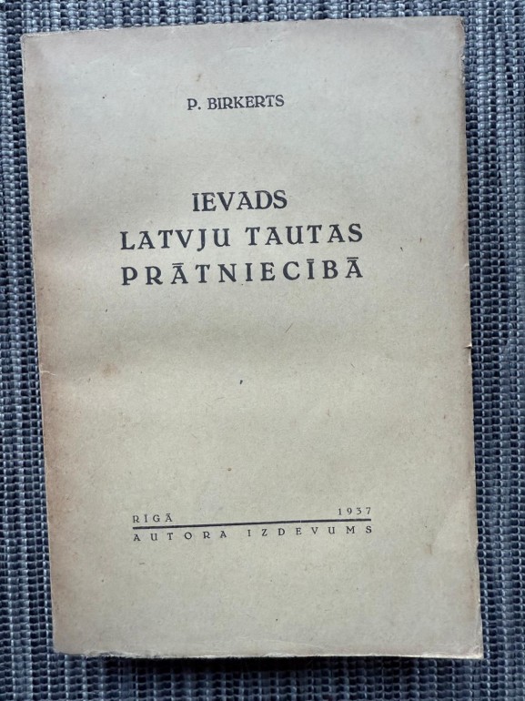| Grāmata “Ievads latvju tautas prātniecībā” (Pēteris Birkerts, 1937) ir apjomīgs darbs (543 lpp.), kas pēta latviešu tautas domas, uzskatus un filozofiskās atziņas, balstoties uz folkloras materiāliem – parunām, sakāmvārdiem, mīklām, anekdotēm. Autors analizē tautas prāta izpausmes, gudrības un muļķības jēdzienus, sniedzot unikālu skatījumu uz latviešu kultūras garīgo mantojumu. | |
