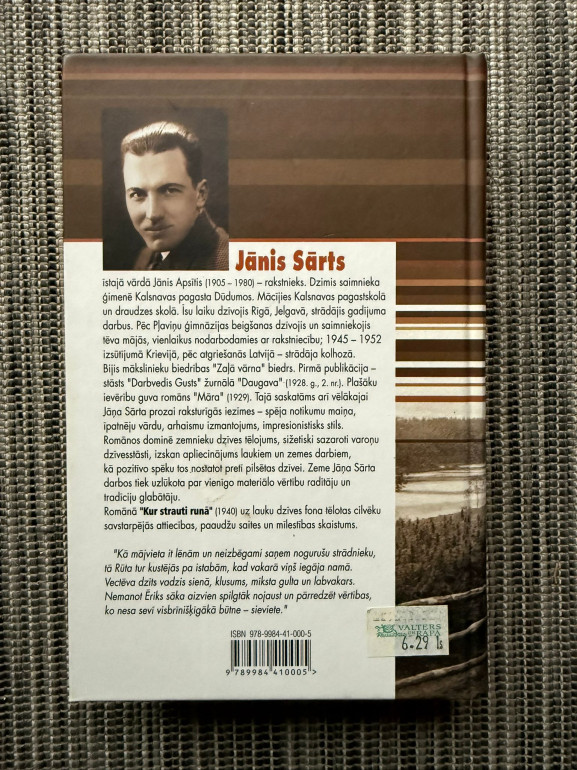 | Grāmata “Kur strauti runā” (Jānis Sārts) ir latviešu literatūras klasika – stāsts par cilvēka un dabas tuvību, dzīves ritumu laukos un ētiskām vērtībām. Autors caur tēlu likteņiem atklāj mīlestību, godaprātu un piederību zemei, radot poētisku, sirsnīgu vidi. | |