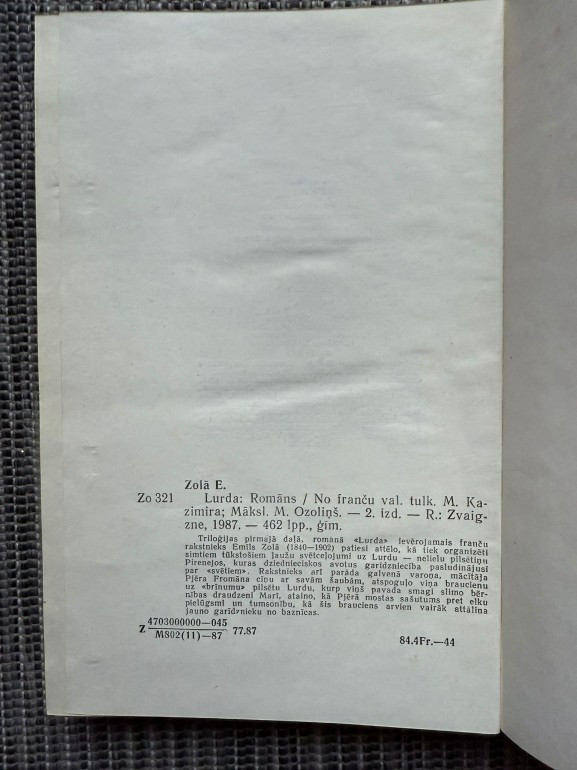 | "Lurda" ir Emīla Zolā triloģijas Trīs pilsētas pirmā daļa. Romāns seko jaunajam mācītājam Pjēram Fromānam, kurš kopā ar smagi slimo bērnības draudzeni dodas svētceļojumā uz Lurdu. Ceļojuma laikā viņš saskaras ar ticības krīzi, redzot baznīcas liekulību un cilvēku cerības uz brīnumiem. | |