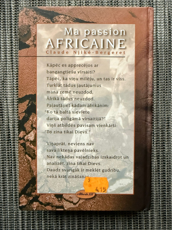 | Autobiogrāfisks stāsts par franču sievietes dzīvi Kamerūnā, laulību ar bangangtiešu virsaiti un kultūru sadursmi. Grāmata atklāj mīlestību, tradīcijas un likteņa noslēpumus, kurus, kā saka autore, zina tikai Dievs. | |