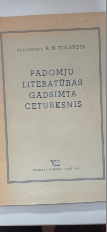 | Brošūrā publicēta akadēmiķa A. Tolstoja runa PSRS Zinātņu akadēmijas jubilejas sesijas kopsapulcē 1942. gada 15.-18. novembrī. Tulkojusi rakstniece Anna Sakse. | |
