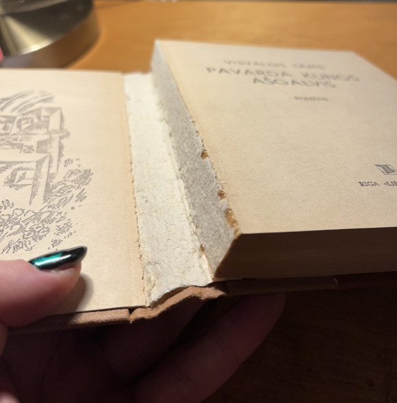 | Atplīsusi muguriņa, bet viegli salīmējama (skat. attēlu). Iesējums nav bojāts. | |