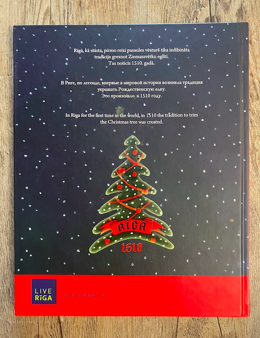 | Bagātīgi ilustrēts grāmatas izdevumus (latviešu-krievu-angļu valodā), kuru centrā ir stāsts par 1510. gadā Rīgā aizsākušos svētku eglītes greznošanas tradīciju. Grāmatas autors rakstnieks savā darbā brīvi pārstaigā gadsimtu robežas un pagātne pārtop šodienā. Rakstnieks zīmē lieliskas vēsturiskos notikumos balstītas gleznas. | |