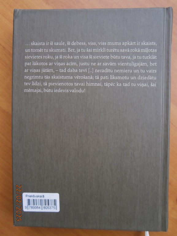 | Vienīgais trūkums- mazliet saspiests grāmatas aizmugures vāka augšējais stūrītis, redzams sludinājuma foto. | |
