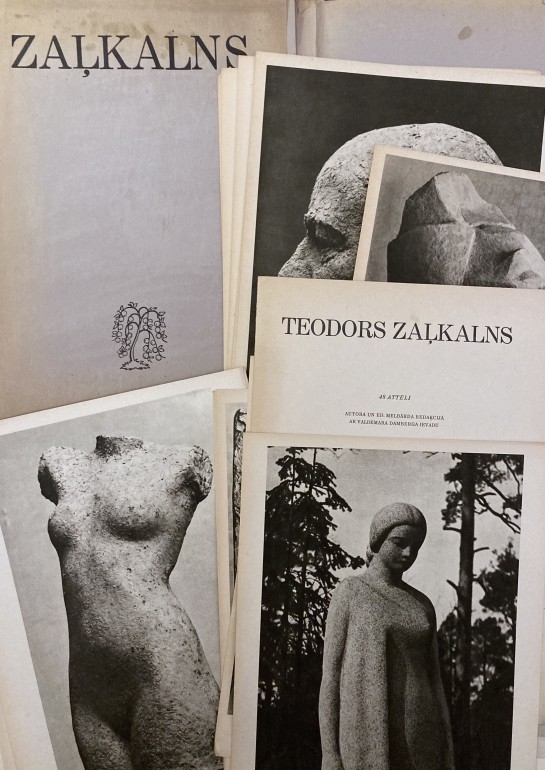 | A3 formāta 48 melnbalti T. Zaļkalna darbu attēli. Valdemāra Damberga ievada teksts. Mape ir no plāna papīra, ieplīsusi un sadzeltējusi. Attēli un teksta brošūra drukāti uz biezāka papīra un ir nevainojamā stāvolī. | |