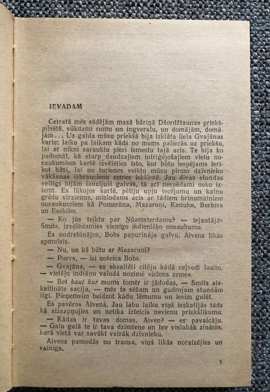 | Šī grāmata vēsti par ceļojumu uz Britu Gvajānu, kurp es devos kopā ar savu biedru Kenetu Smitu tūkstoš deviņi simti piecdesmitajā gadā. Mūsu ekspedīcijas nolūks bija savākt šajā Dienvidamerikas nostūri sastopamo putnu, zīdītāju, rāpuļu un zivju kolekciju un atvest uz Angliju sadalīšanai dažādiem zooloģiskajiem dārziem. | |