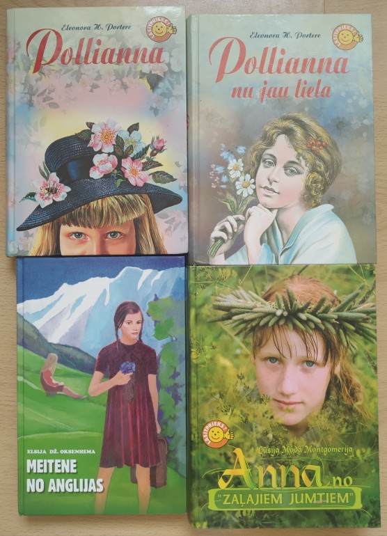 | Katru grāmatu atsevišķi atdošu pa 1.50€ Visas kopā pa 5€ 1. Eleonora H. Portere "Pollianna" 2. Eleonora H. Portere "Pollianna nu jau liela" 3. Elsija Dž. Oksenhema "Meitene no Anglijas" 4. Lūsija Moda Montgomerija "Anna no zaļajiem jumtiem" | |