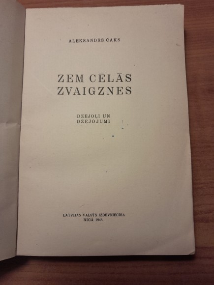 | Latvijas valsts izdevniecība Rīgā 1948. 325 lpp., daļa lpp. nav atgrieztas. | |