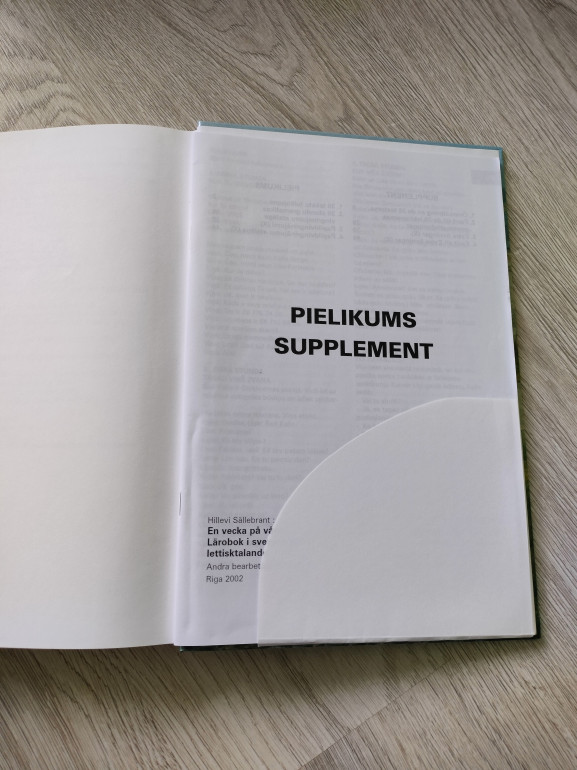 | Gandrīz nelietota zviedru valodas mācību grāmata. Līdz arī pielikums. Pielikuma daļa ar visu kabatiņu ir pilnībā atlīmējusies no grāmatas, tas gan grāmatas lietošanai netraucē. | |